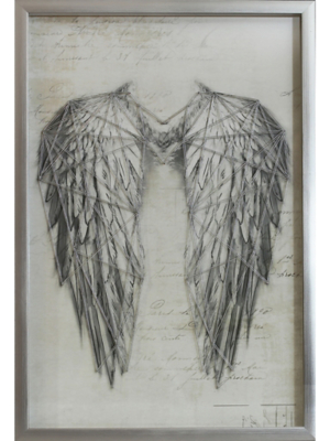 Find angel wings wall art to hang above a small storage cabinet.